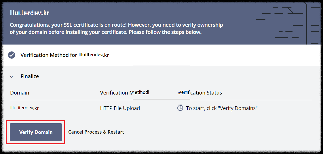 거의다 끝났습니다. 확인 후 Verify Domain버튼을 클릭해 줍니다.